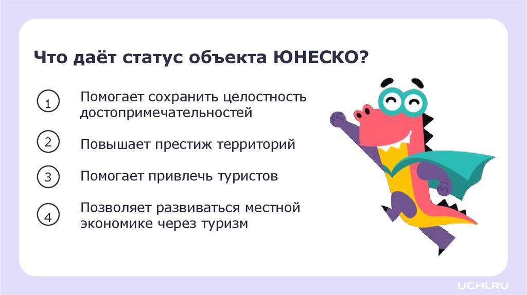 Что даёт статус объекта ЮНЕСКО?1