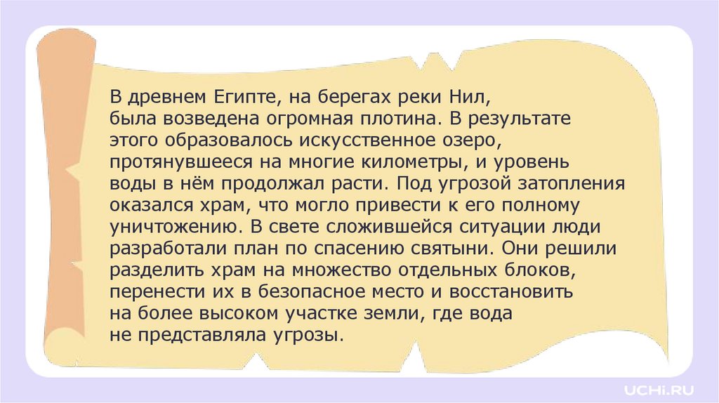 В древнем Египте, на берегах реки Нил,была возведена огромная плотина. В результате