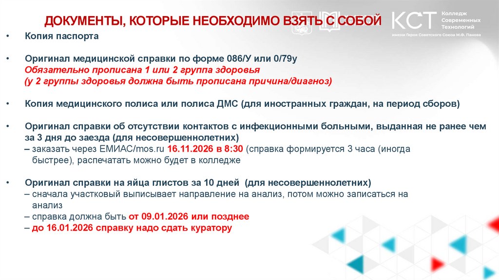 ДОКУМЕНТЫ, КОТОРЫЕ НЕОБХОДИМО ВЗЯТЬ С СОБОЙ!
