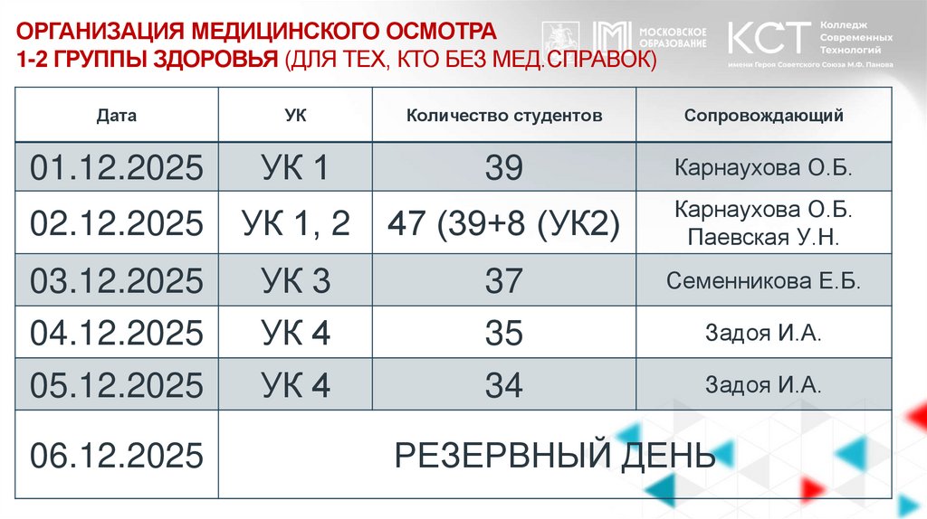 ОРГАНИЗАЦИЯ МЕДИЦИНСКОГО ОСМОТРА1-2 ГРУППЫ ЗДОРОВЬЯ (ДЛЯ ТЕХ, КТО БЕЗ МЕД.СПРАВОК)