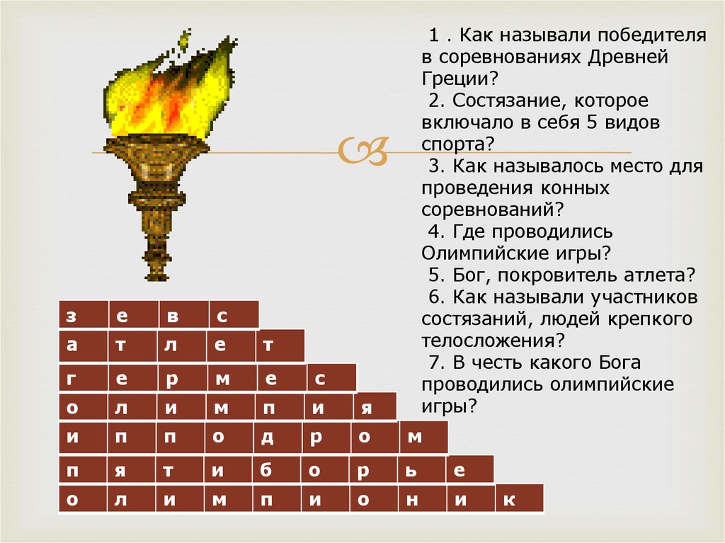 1 . Как называли победителяв соревнованиях Древней