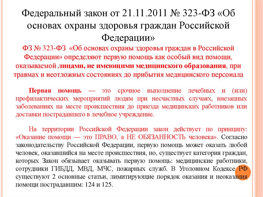 ФЗ № 323-ФЗ «Об основах охраны здоровья граждан в Российской