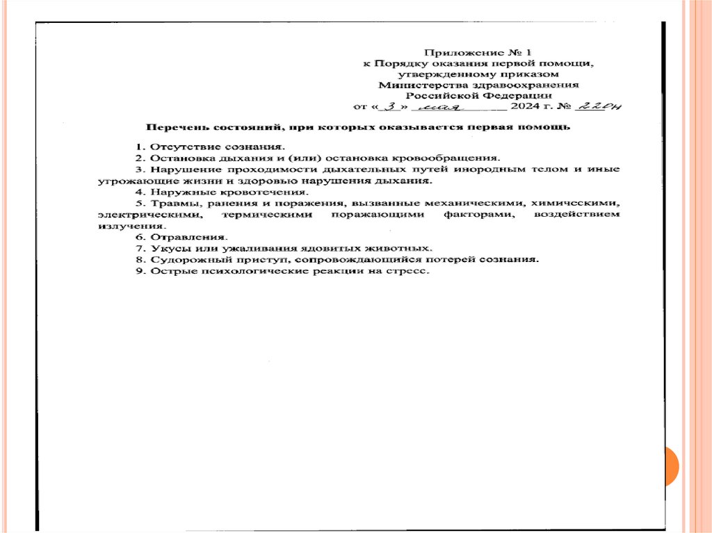 ПЕРЕЧЕНЬ МЕРОПРИЯТИЙ ПО ОКАЗАНИЮ ПЕРВОЙ ПОМОЩИИ ПОСЛЕДОВАТЕЛЬНОСТЬ ИХ ПРОВЕДЕНИЯ (по новому