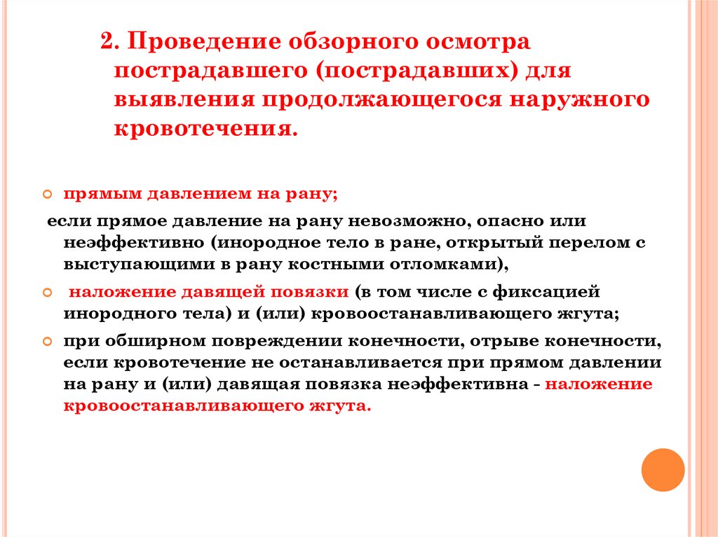 2. Проведение обзорного осмотрапострадавшего (пострадавших) для