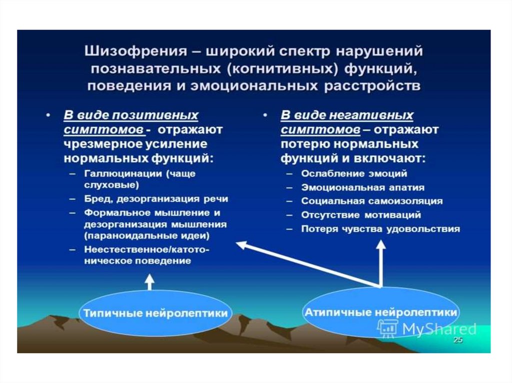 преимущественным воздействием на отдельные симптомымишени, например бред, галлюцинации, расторможённость