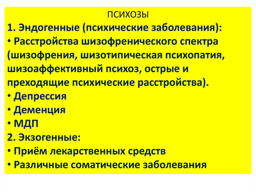 ПСИХОЗЫ1. Эндогенные (психические заболевания):
