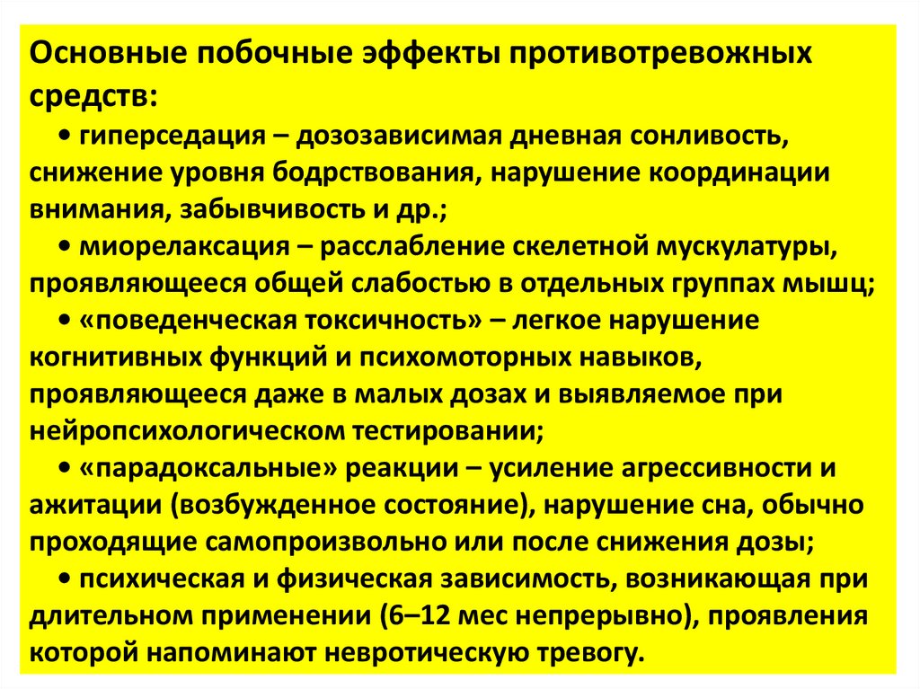 депримирующее влияние на ЦНС, брадипсихизм, нарушение