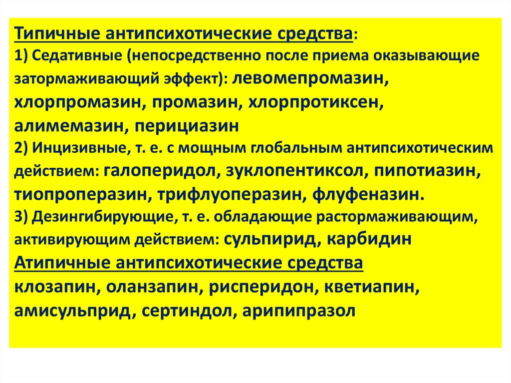 Типичные антипсихотические средства:1) Седативные (непосредственно после приема оказывающие
