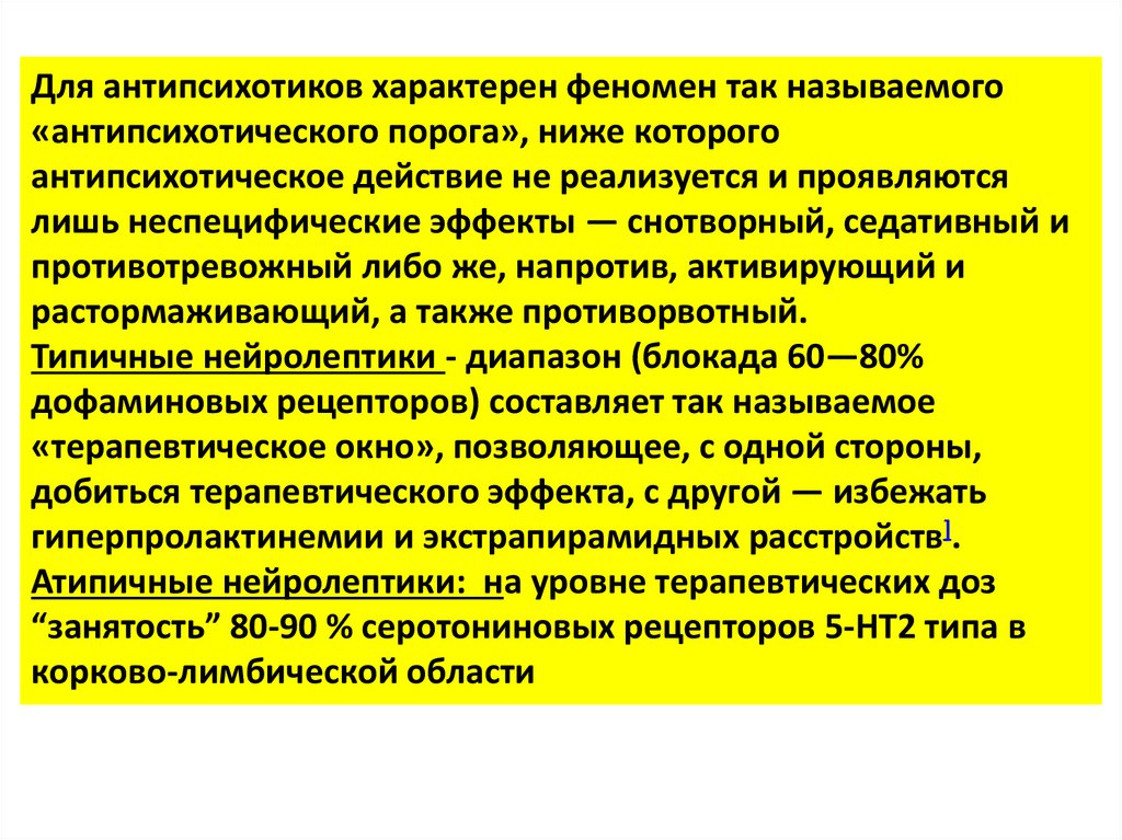Для антипсихотиков характерен феномен так называемого«антипсихотического порога», ниже которого