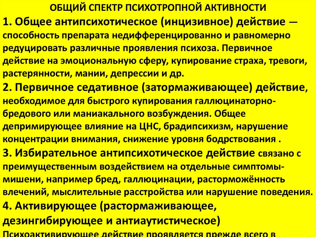 ОБЩИЙ СПЕКТР ПСИХОТРОПНОЙ АКТИВНОСТИ1. Общее антипсихотическое (инцизивное) действие —