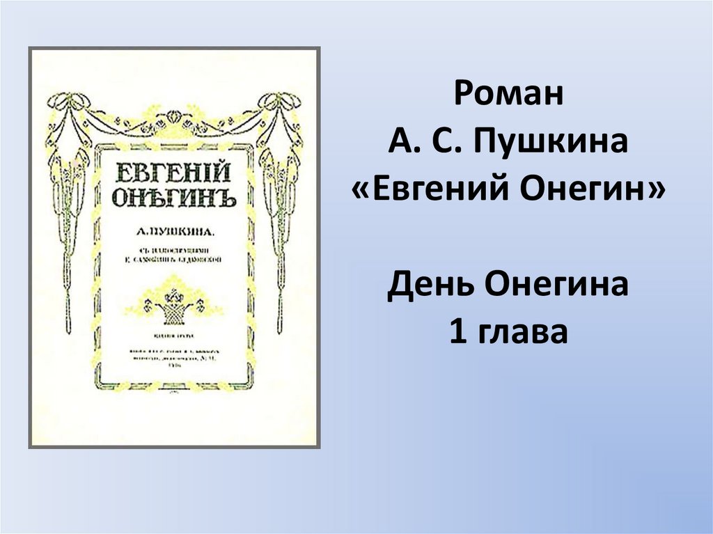 1. Роман А. С. Пушкина «Евгений Онегин» День Онегина 1 глава