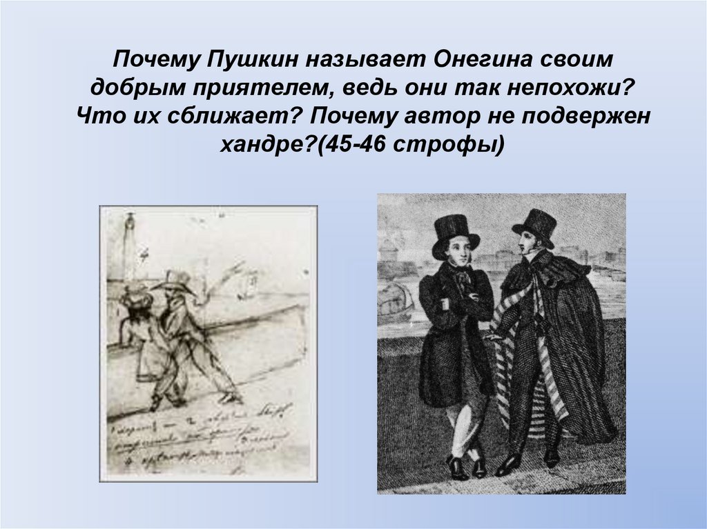 Почему Пушкин называет Онегина своимдобрым приятелем, ведь они так непохожи?