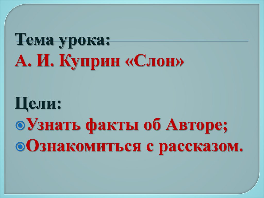 Тема урока:А. И. Куприн «Слон»