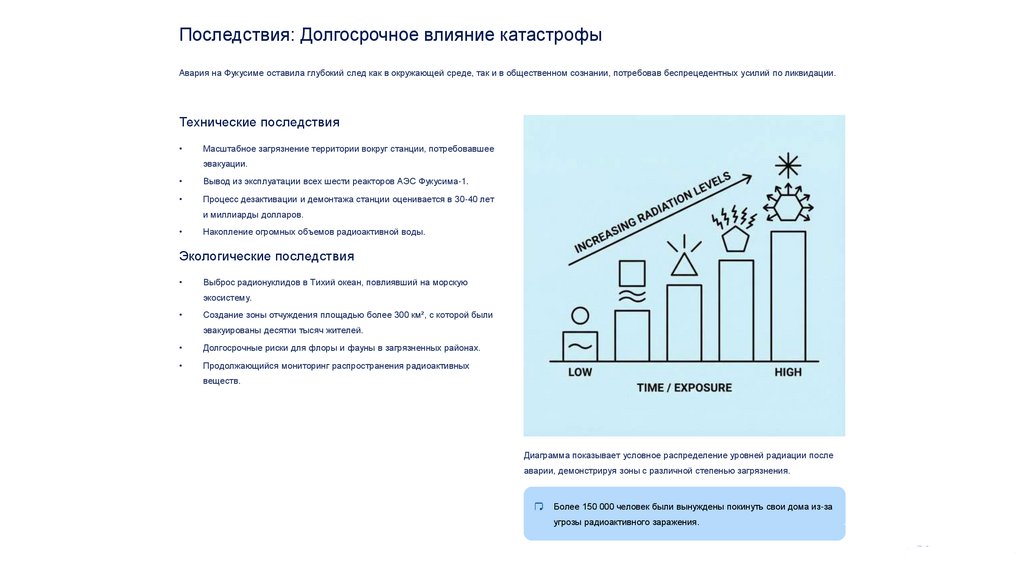Последствия: Долгосрочное влияние катастрофыАвария на Фукусиме оставила глубокий след как в окружающей среде, так и в общественном сознании, потребовав беспрецедентных усилий по ликвидации.