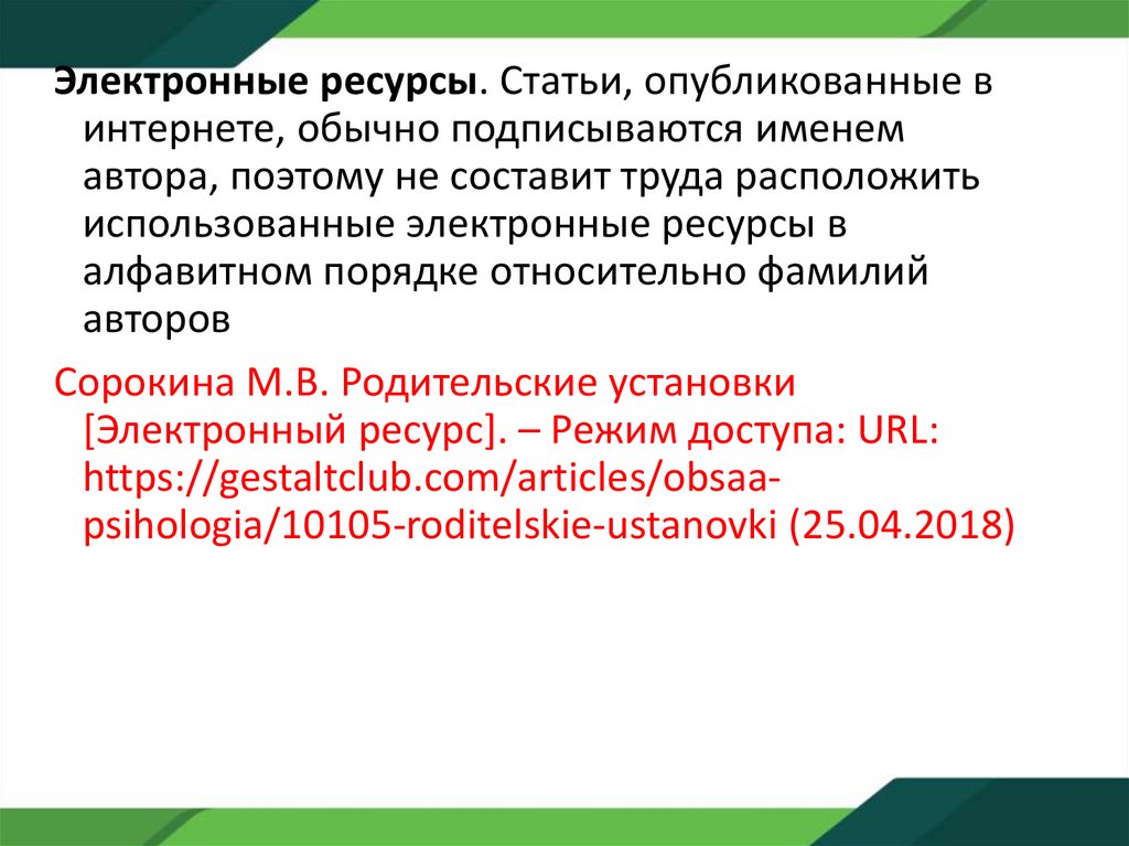 Электронные ресурсы. Статьи, опубликованные винтернете, обычно подписываются именем