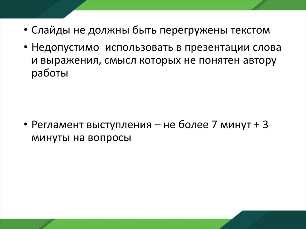 - коммуникативные умения докладчика проявлены на недостаточном уровне;
