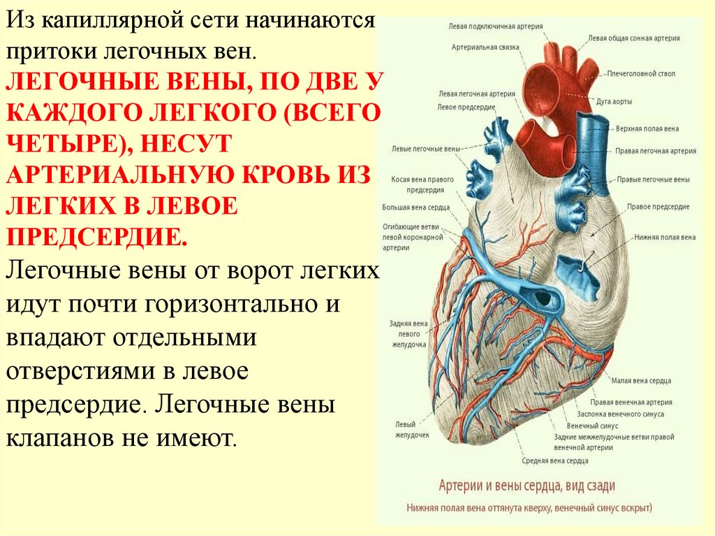 • 4 легочные вены (по 2