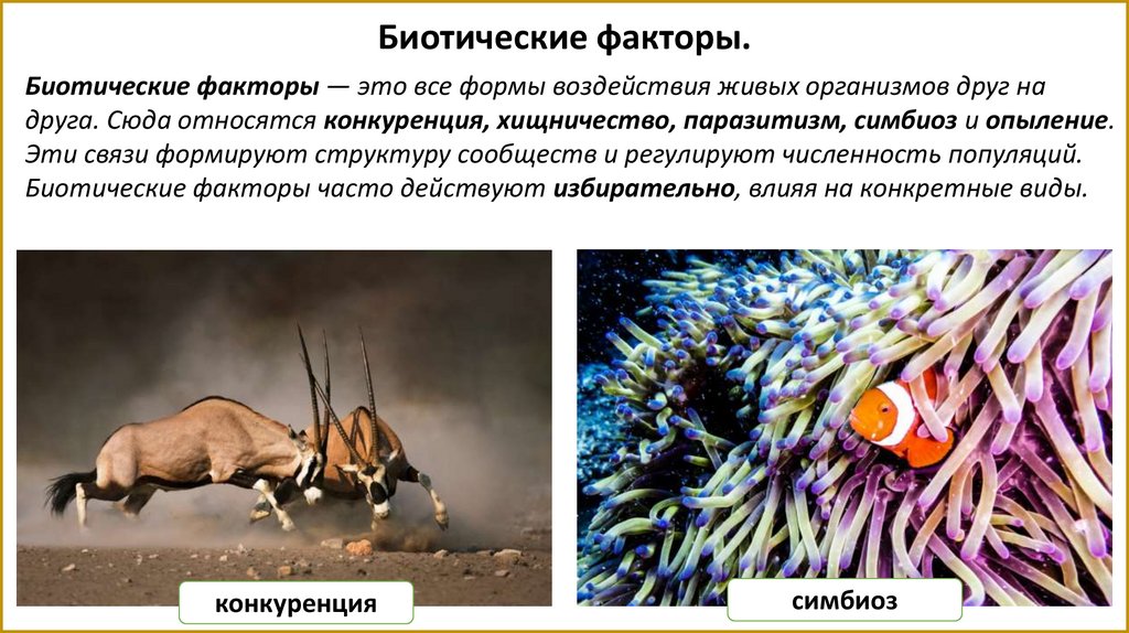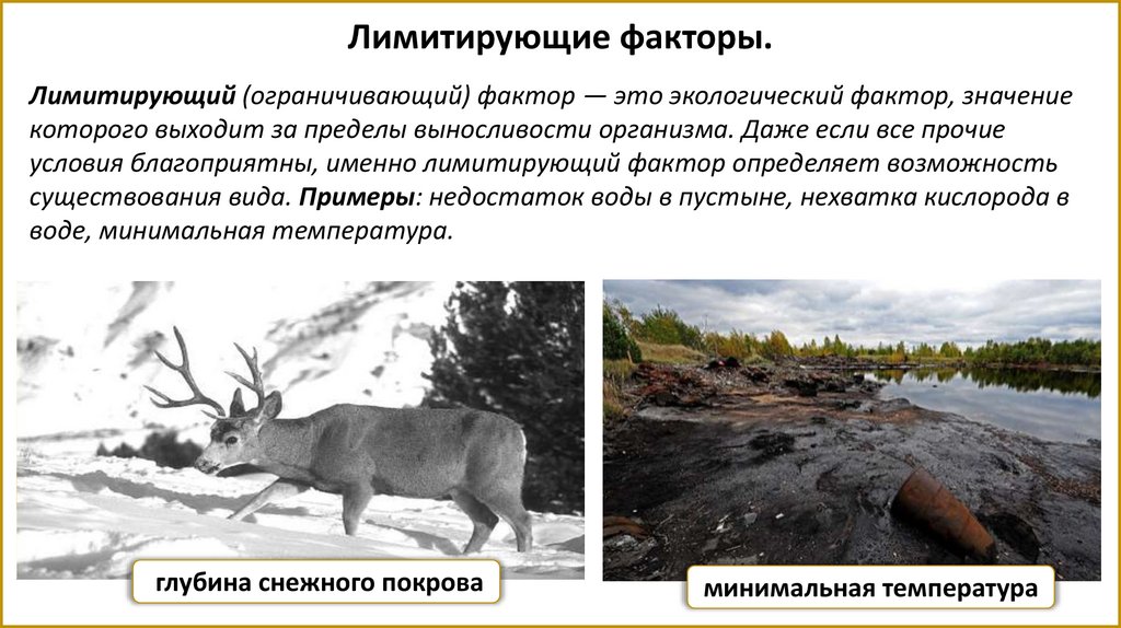существования вида. Примеры: недостаток воды в пустыне, нехватка кислорода в