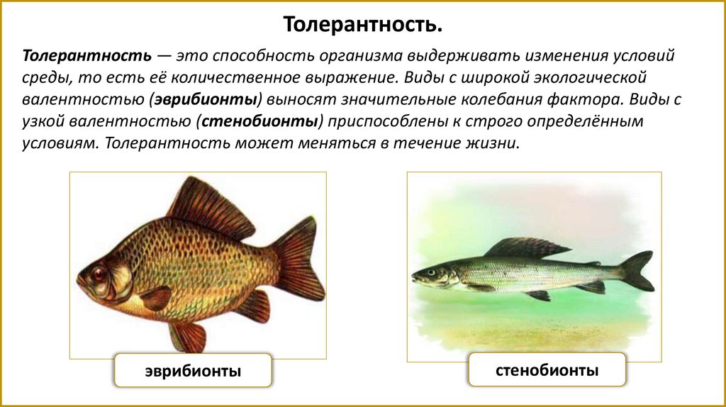 Толерантность.Толерантность — это способность организма выдерживать изменения условий