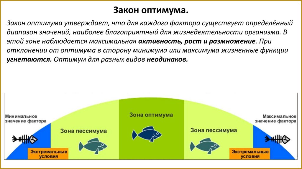 Закон оптимума.Закон оптимума утверждает, что для каждого фактора существует определённый