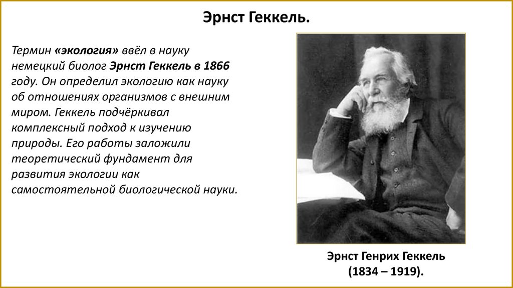 Эрнст Геккель.Термин «экология» ввёл в науку