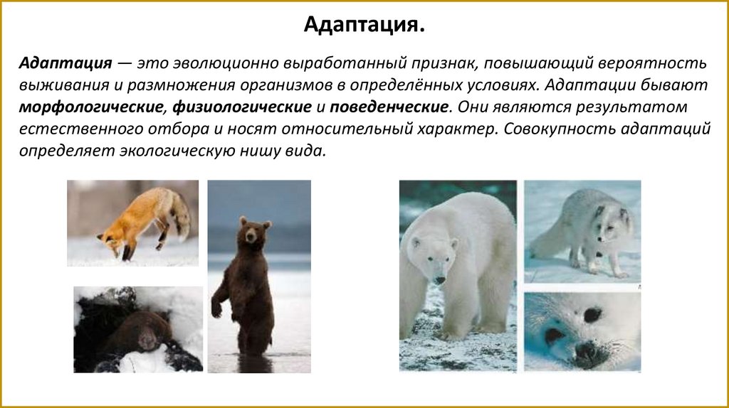 Адаптация.Адаптация — это эволюционно выработанный признак, повышающий вероятность