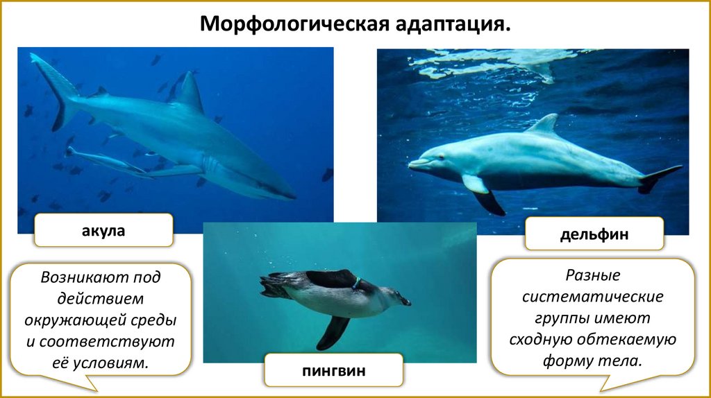специализированными адаптациями: обтекаемая форма тела, жабры для дыхания,