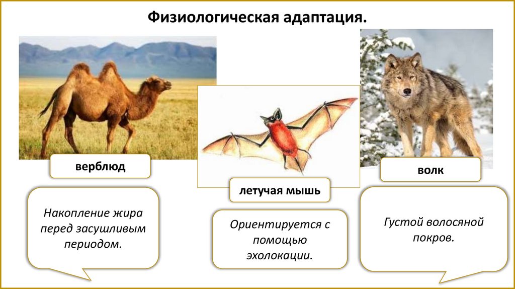 выживания и размножения организмов в определённых условиях. Адаптации бывают