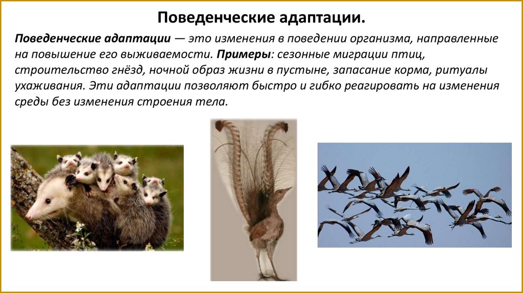 на повышение его выживаемости. Примеры: сезонные миграции птиц,