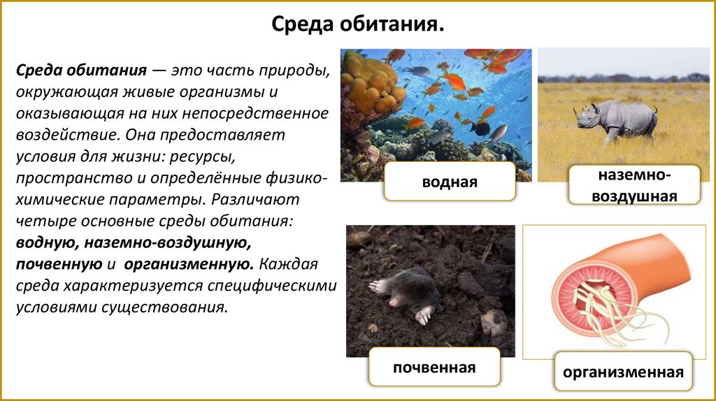 вида в природе: лес, луг, озеро, пустыня. Оно обеспечивает организм необходимыми