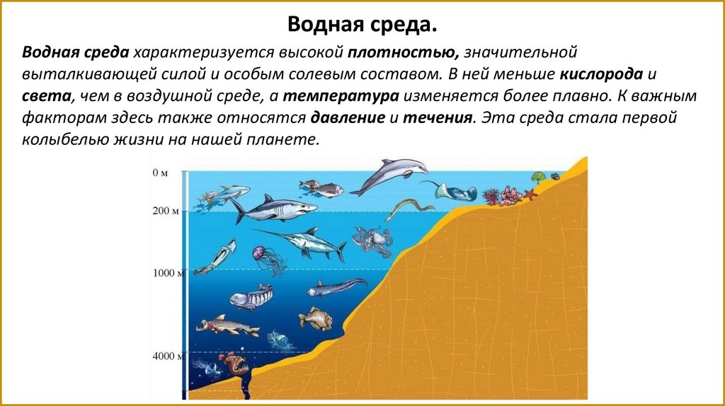 Водная среда.Водная среда характеризуется высокой плотностью, значительной