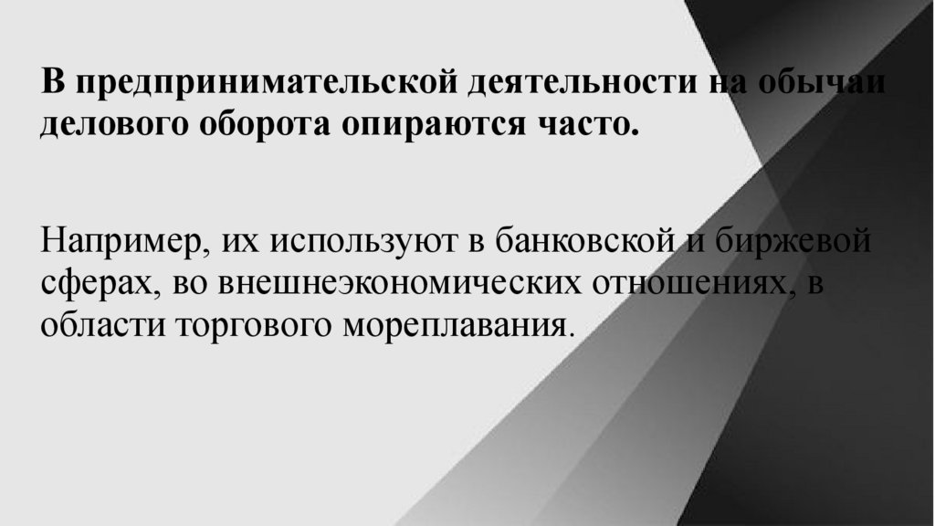 В предпринимательской деятельности на обычаиделового оборота опираются часто.