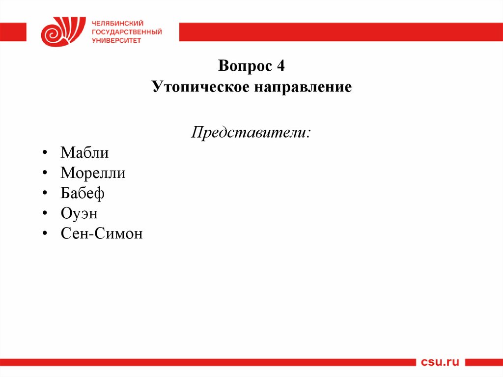 Вопрос 4Утопическое направление