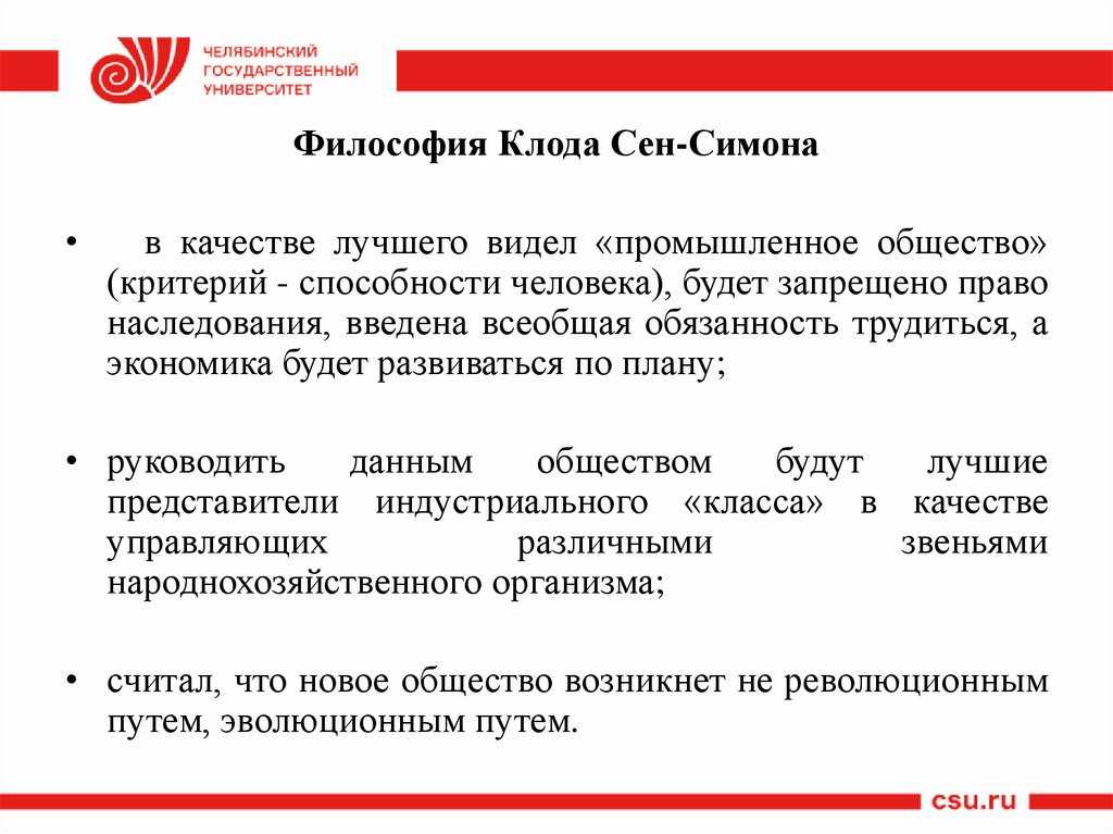 Философия Клода Сен-Симона• выдвинул