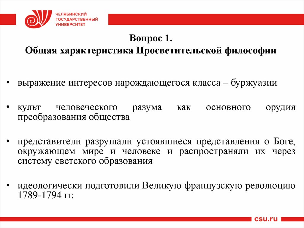 Вопрос 1.Общая характеристика Просветительской философии