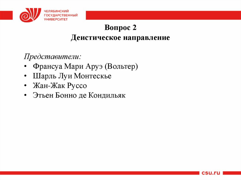 Вопрос 2Деистическое направление