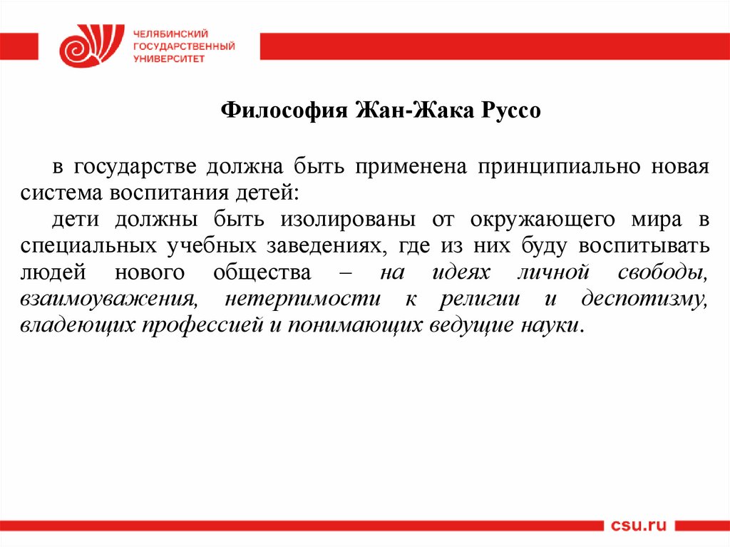 Философия Жан-Жака Руссов государстве должна быть применена принципиально новая