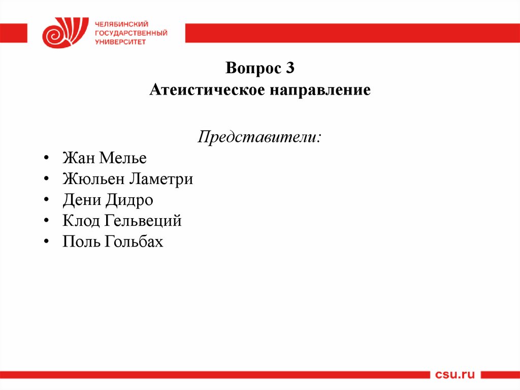 Вопрос 3Атеистическое направление