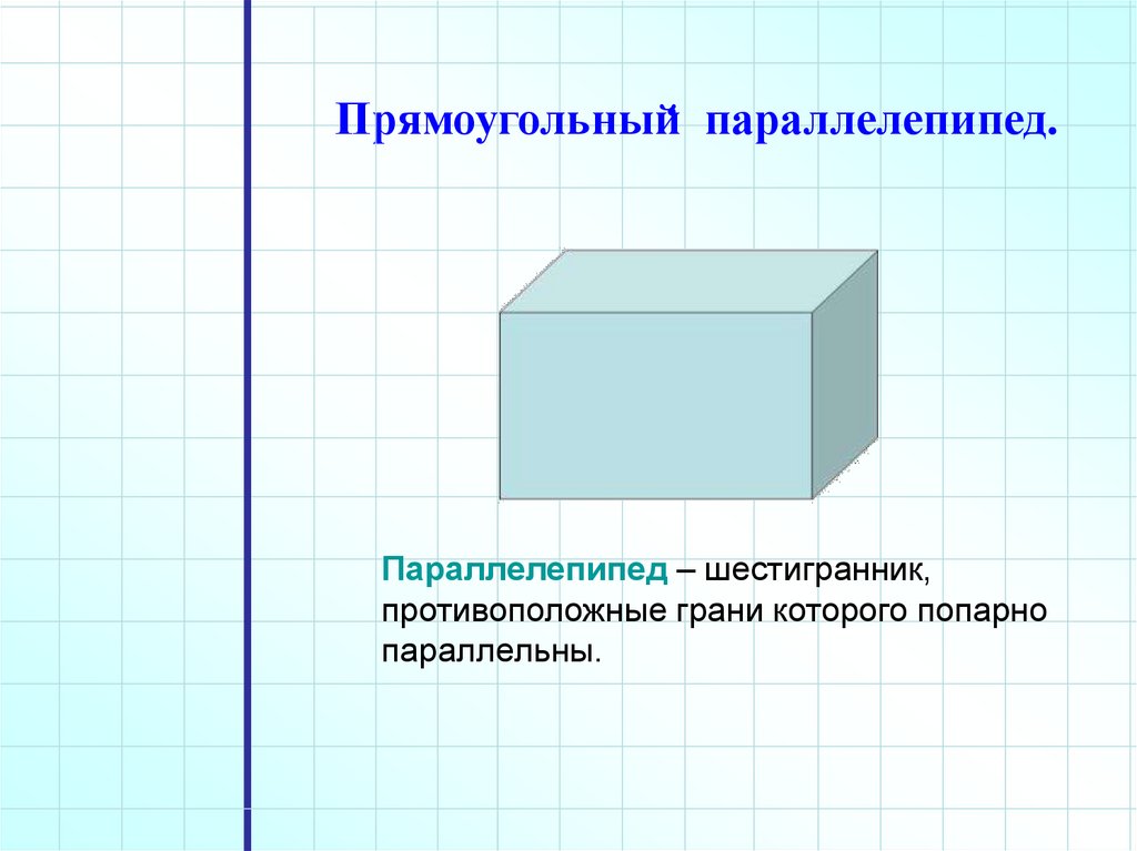 Прямоугольный. параллелепипед.Параллелепипед – шестигранник,