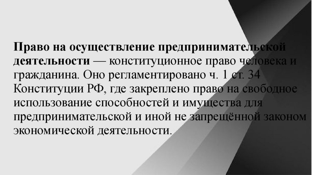 Право на осуществление предпринимательскойдеятельности — конституционное право человека и