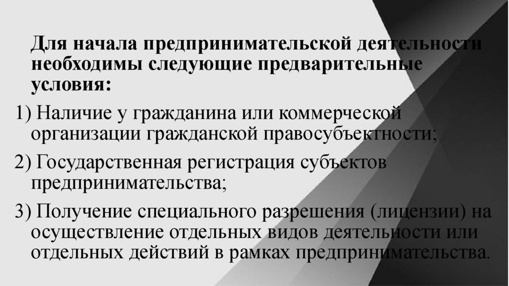 Для начала предпринимательской деятельностинеобходимы следующие предварительные