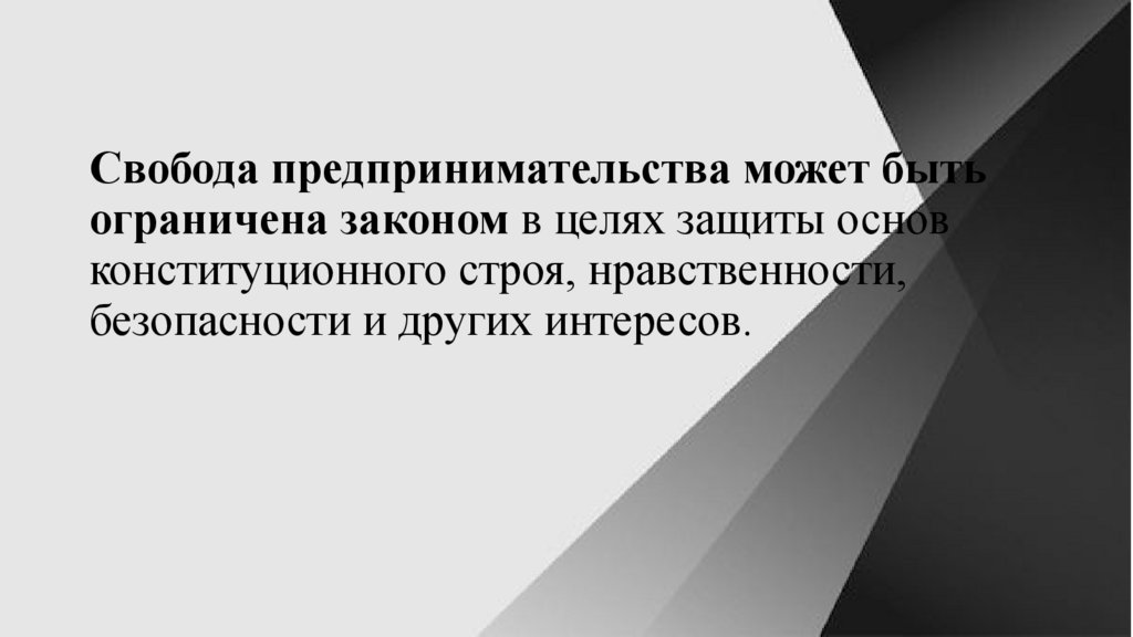 Свобода предпринимательства может бытьограничена законом в целях защиты основ