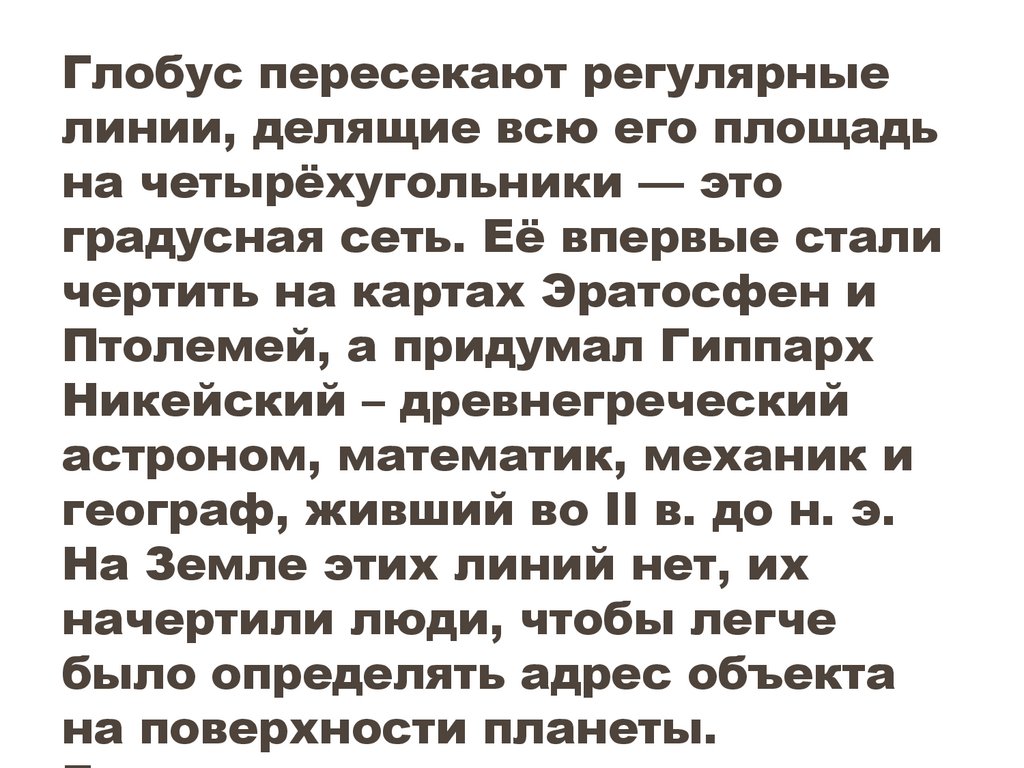 Глобус пересекают регулярныелинии, делящие всю его площадь