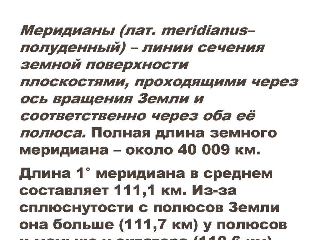 Меридианы (лат. meridianus–полуденный) – линии сечения