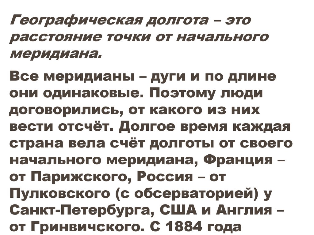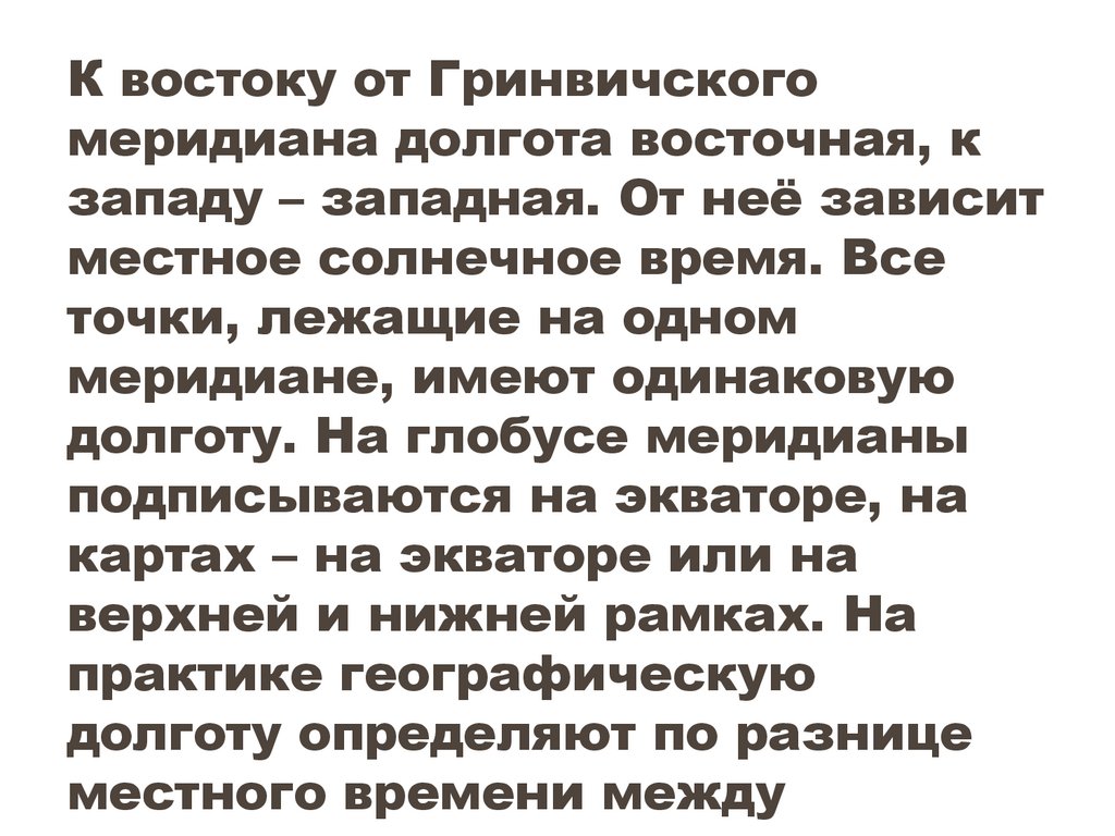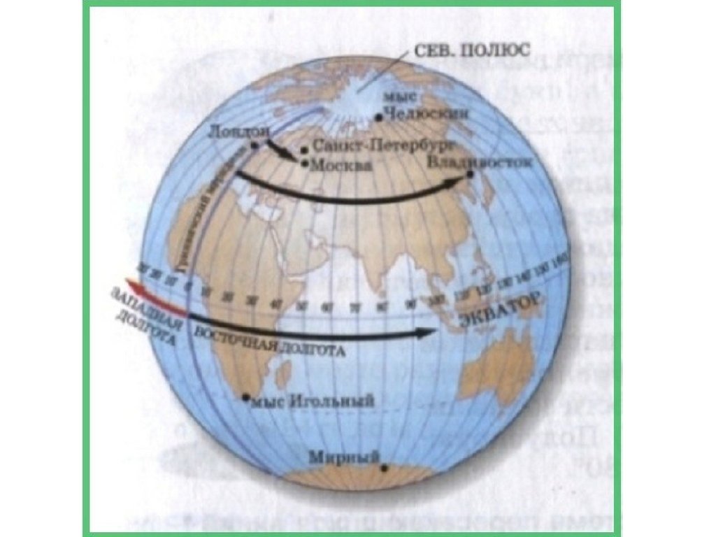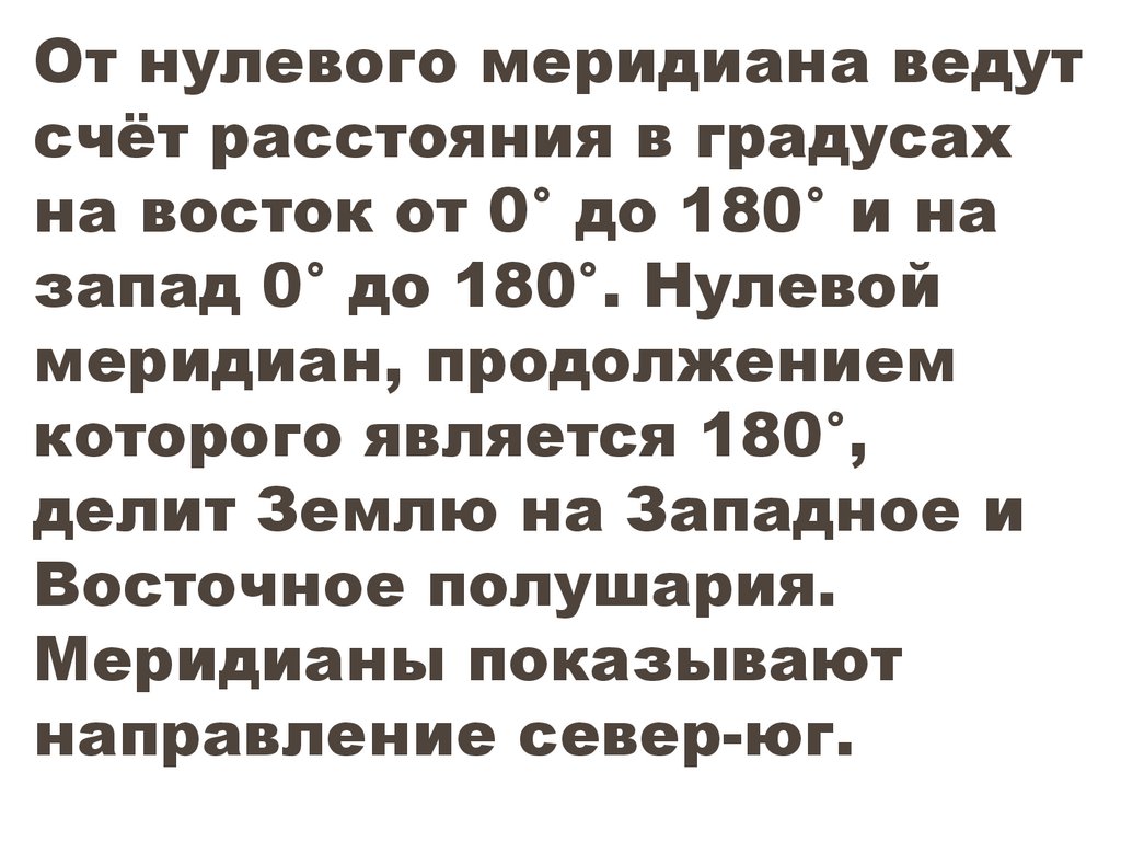 От нулевого меридиана ведутсчёт расстояния в градусах