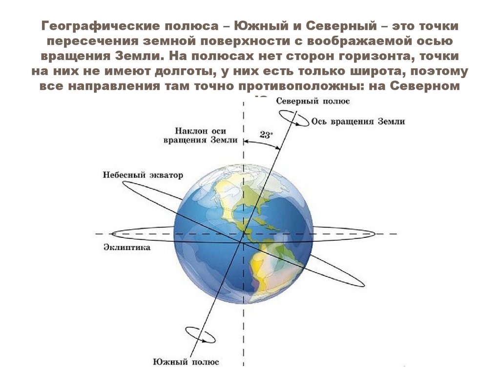 Географические полюса – Южный и Северный – это точкипересечения земной поверхности с воображаемой осью