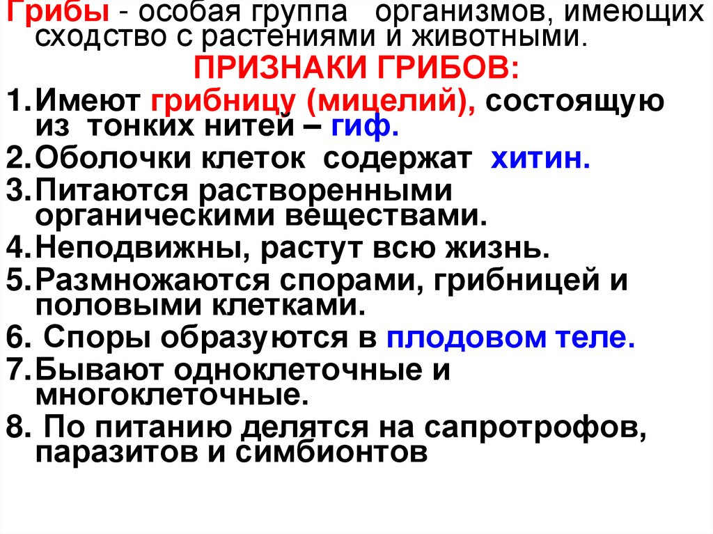 Грибы - особая группа организмов, имеющихсходство с растениями и животными.