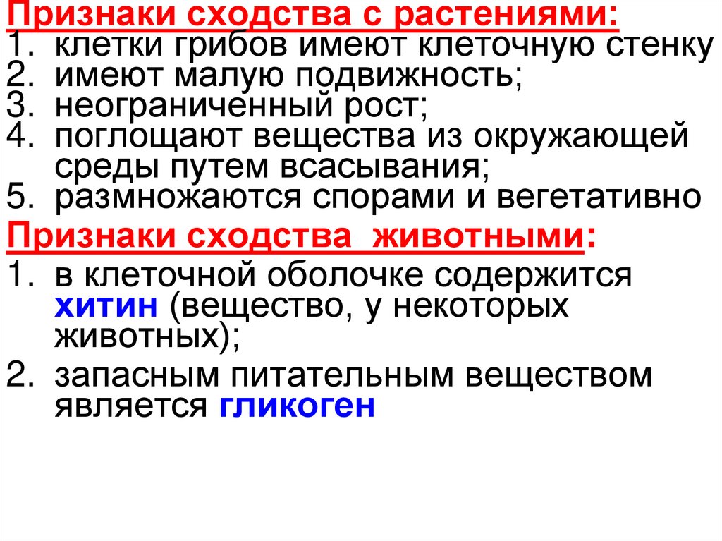 Признаки сходства с растениями:1. клетки грибов имеют клеточную стенку