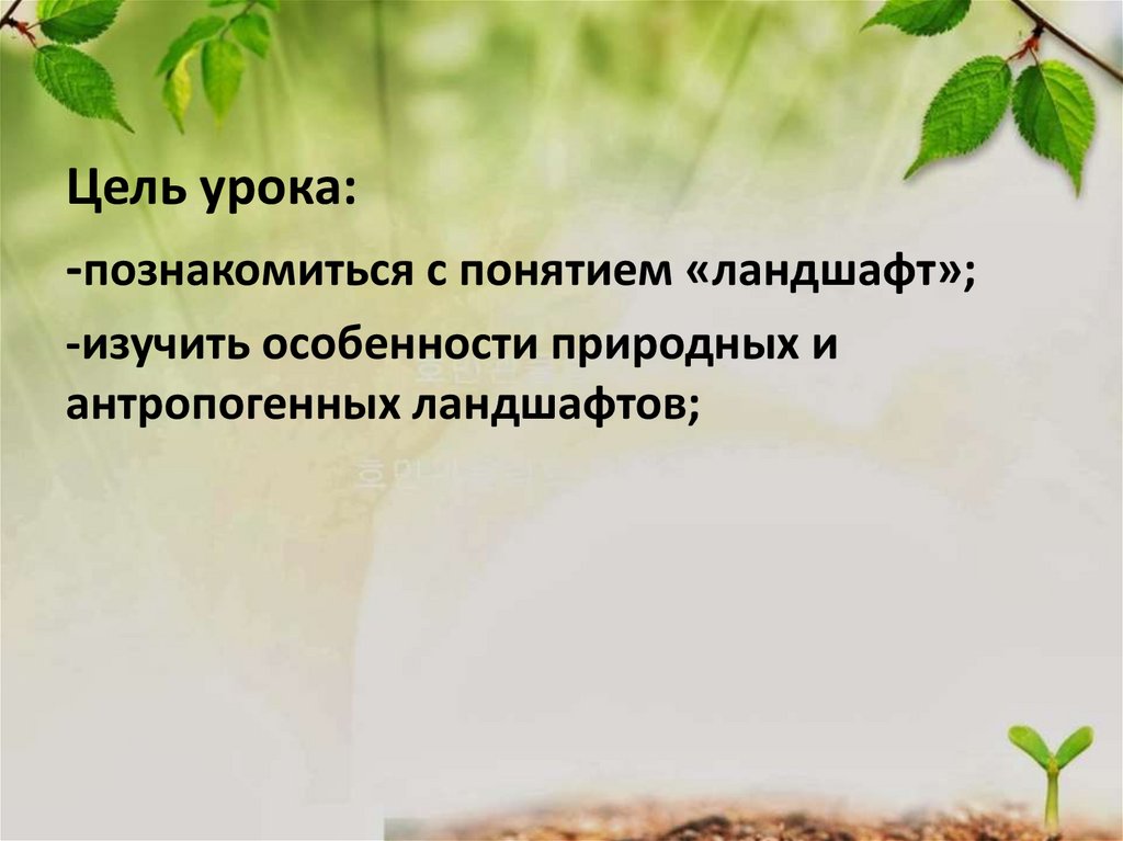 Цель урока:-познакомиться с понятием «ландшафт»;