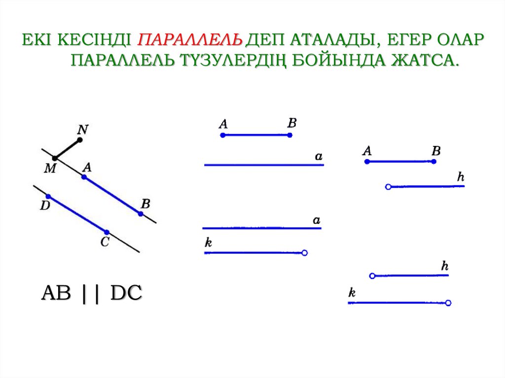 ЕКІ КЕСІНДІ ПАРАЛЛЕЛЬ ДЕП АТАЛАДЫ, ЕГЕР ОЛАРПАРАЛЛЕЛЬ ТҮЗУЛЕРДІҢ БОЙЫНДА ЖАТСА.